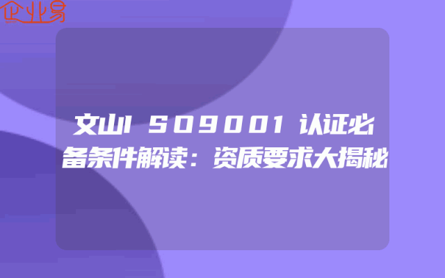 - 文山ISO9001认证必备条件解读:资质要求大揭秘