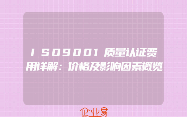 - ISO9001质量认证费用详解:价格及影响因素概览