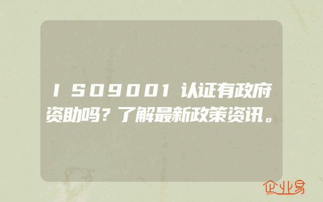 - ISO9001认证有政府资助吗?了解最新政策资讯。