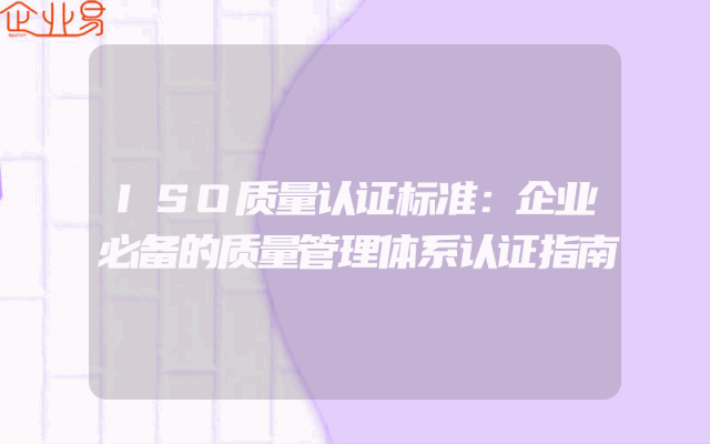 - ISO质量认证标准:企业必备的质量管理体系认证指南