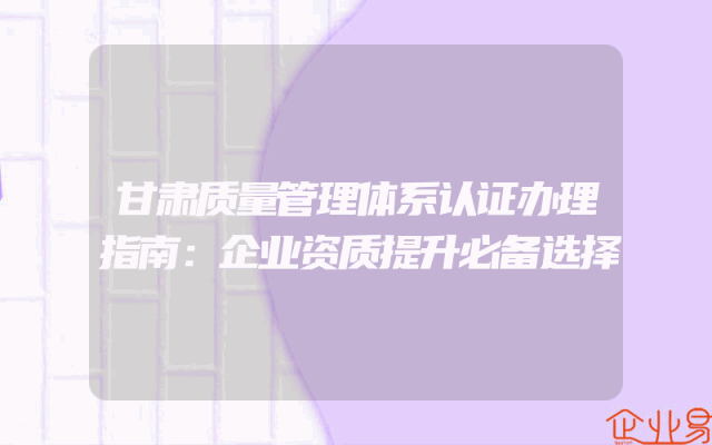 - 甘肃质量管理体系认证办理指南:企业资质提升必备选择