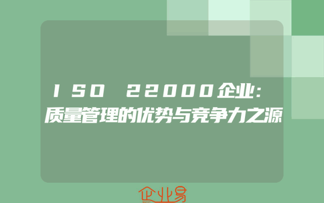 - ISO 22000企业:质量管理的优势与竞争力之源