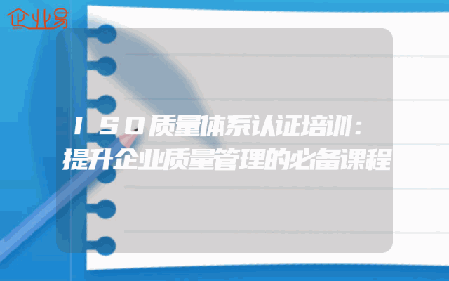 - ISO质量体系认证培训:提升企业质量管理的必备课程
