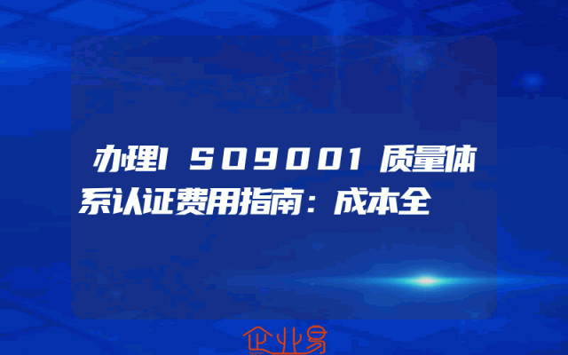 - 办理ISO9001质量体系认证费用指南:成本全解析一、了解ISO9001质量体系认证的重要性ISO9001质量体系认证是现代企业管理的重要标准之一,代表着企业拥有卓越的管理能力和质量保证水平。实施