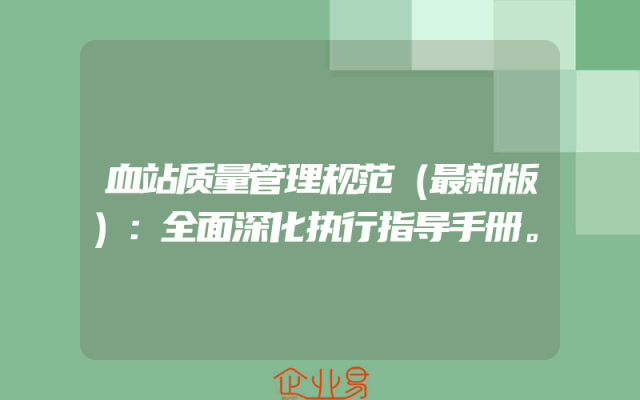 - 血站质量管理规范(最新版):全面深化执行指导手册。