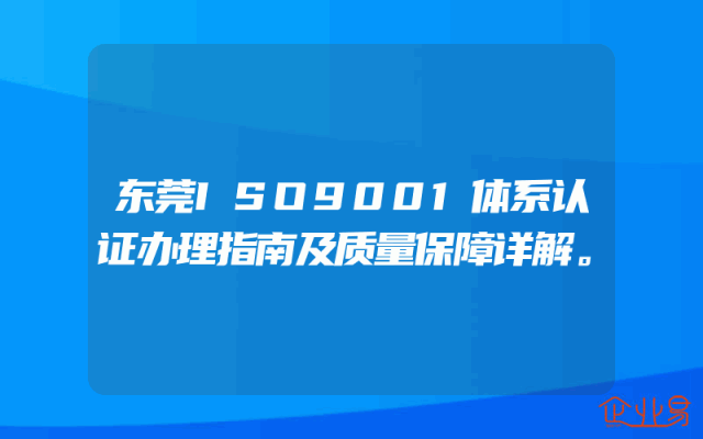 - 东莞ISO9001体系认证办理指南及质量保障详解。