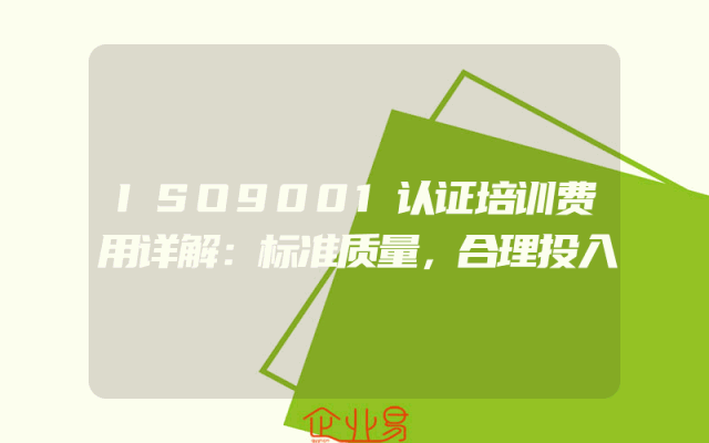 - ISO9001认证培训费用详解:标准质量,合理投入