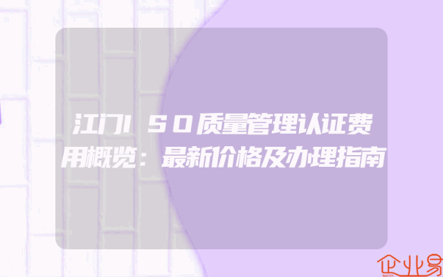 - 江门ISO质量管理认证费用概览:最新价格及办理指南