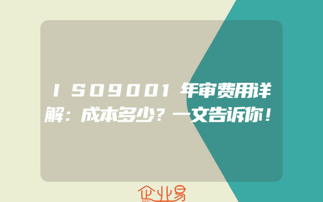 - ISO9001年审费用详解:成本多少?一文告诉你!