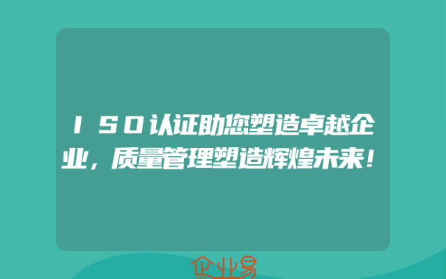- ISO认证助您塑造卓越企业,质量管理塑造辉煌未来!