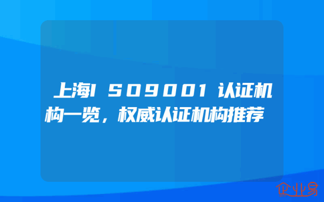 - 上海ISO9001认证机构一览,权威认证机构推荐