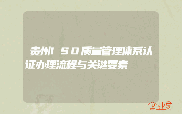 - 贵州ISO质量管理体系认证办理流程与关键要素