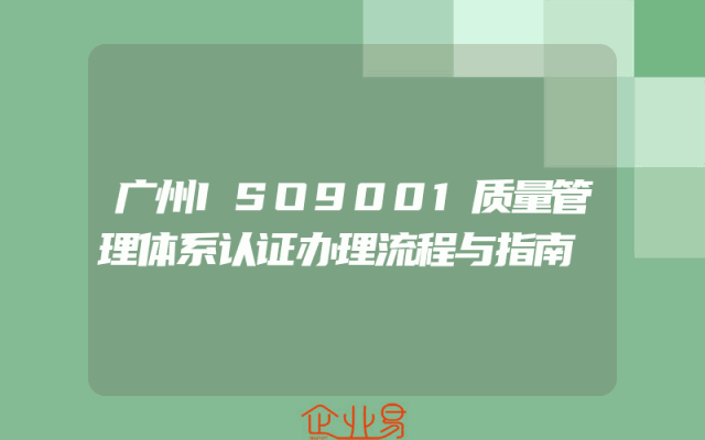 - 广州ISO9001质量管理体系认证办理流程与指南