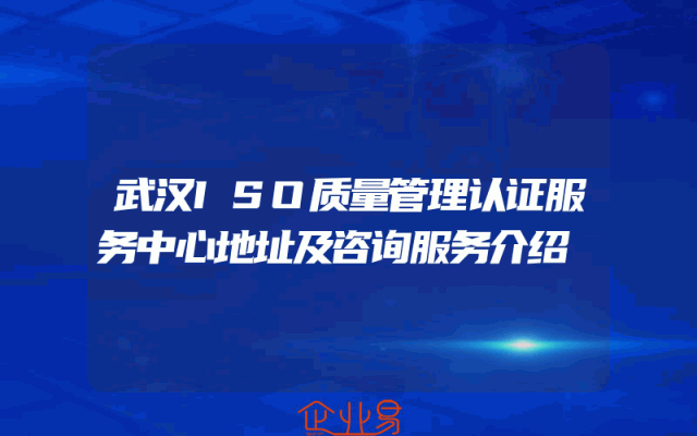 - 武汉ISO质量管理认证服务中心地址及咨询服务介绍
