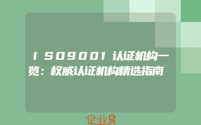 - ISO9001认证机构一览:权威认证机构精选指南