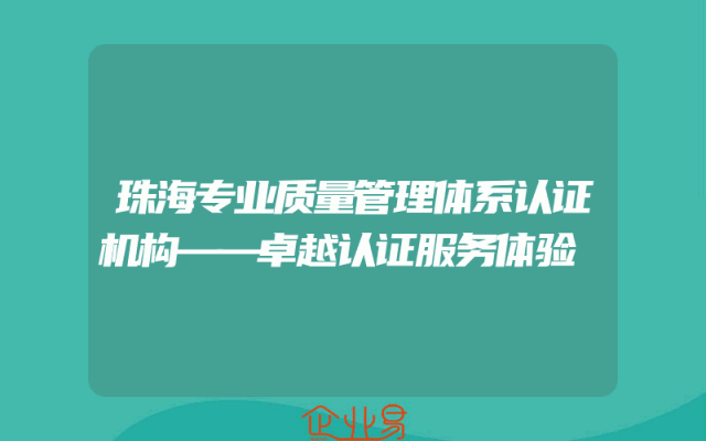 - 珠海专业质量管理体系认证机构——卓越认证服务体验