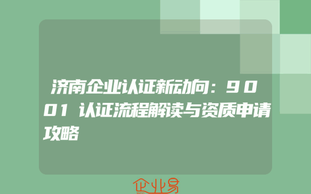 - 济南企业认证新动向:9001认证流程解读与资质申请攻略
