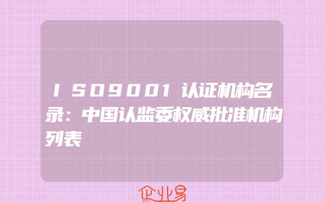 - ISO9001认证机构名录:中国认监委权威批准机构列表