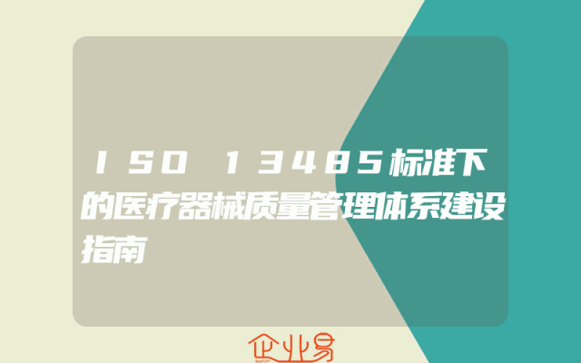 - ISO 13485标准下的医疗器械质量管理体系建设指南