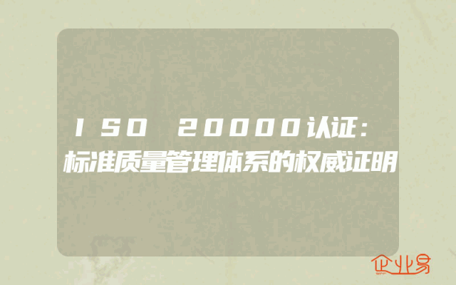 - ISO20000认证解析:标准质量管理体系的权威证明一、ISO20000认证概述ISO20000认证是国际标准化组织(ISO)针对信息技术服务管理体系(ITSMS)的一项权威认证。随着信息技术的飞