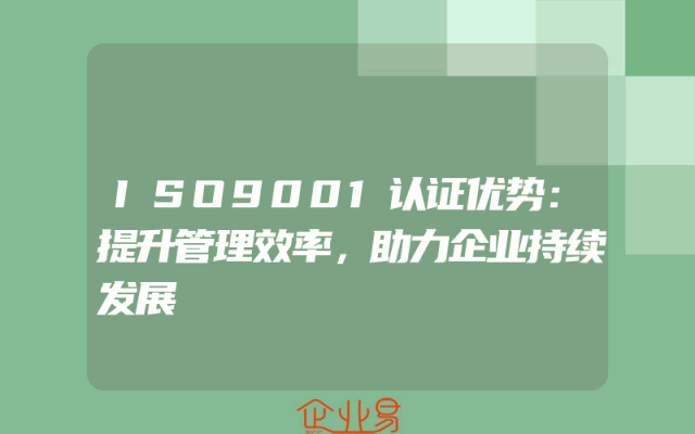 - ISO9001认证优势:提升管理效率,助力企业持续发展