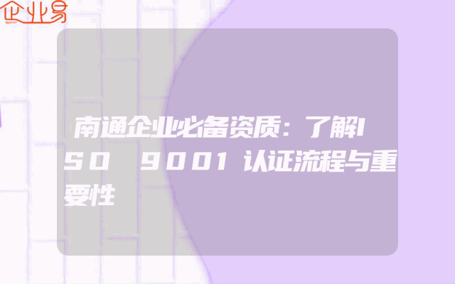 - 南通企业必备资质:了解ISO 9001认证流程与重要性