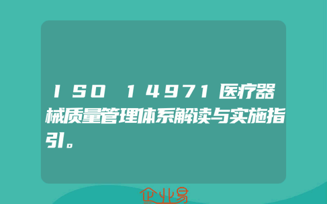 - ISO 14971医疗器械质量管理体系解读与实施指引。