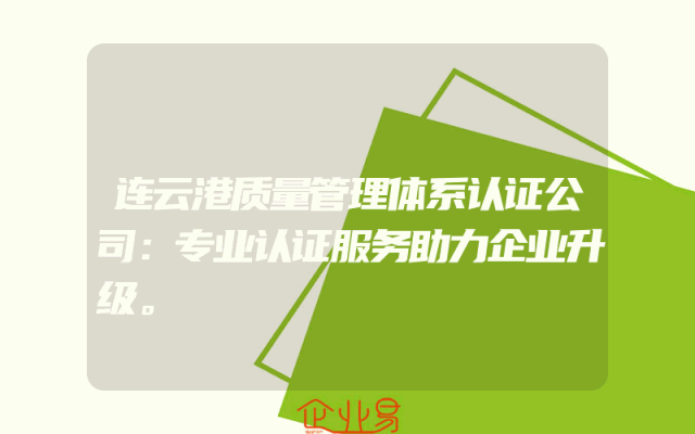 - 连云港质量管理体系认证公司:专业认证服务助力企业升级。
