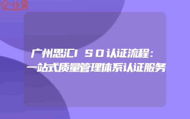 - 广州思汇ISO认证流程:一站式质量管理体系认证服务
