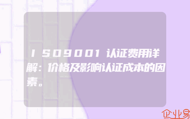 - ISO9001认证费用详解:价格及影响认证成本的因素。