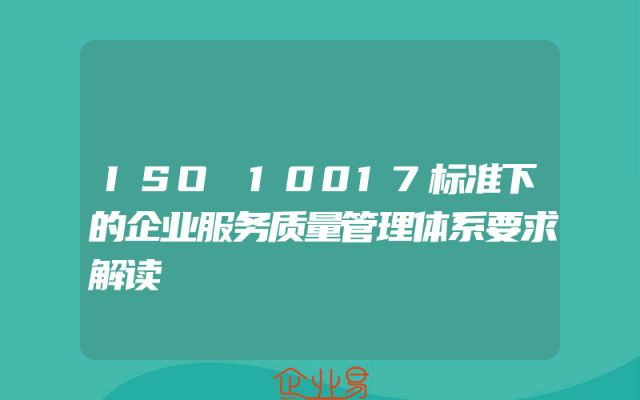 - ISO 10017标准下的企业服务质量管理体系要求解读
