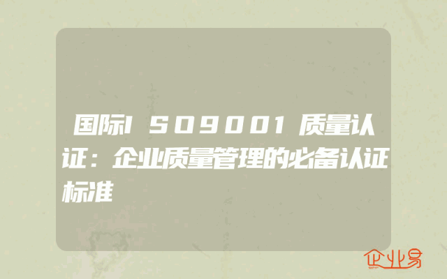 - 国际ISO9001质量认证:企业质量管理的必备认证标准