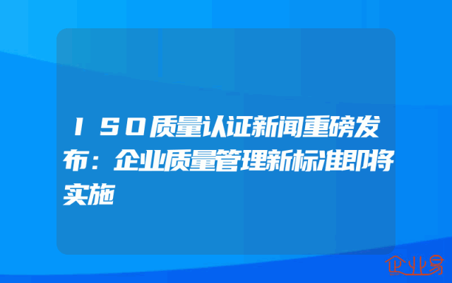 - ISO质量认证新闻重磅发布:企业质量管理新标准即将实施