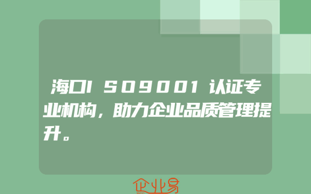 - 海口ISO9001认证专业机构,助力企业品质管理提升。