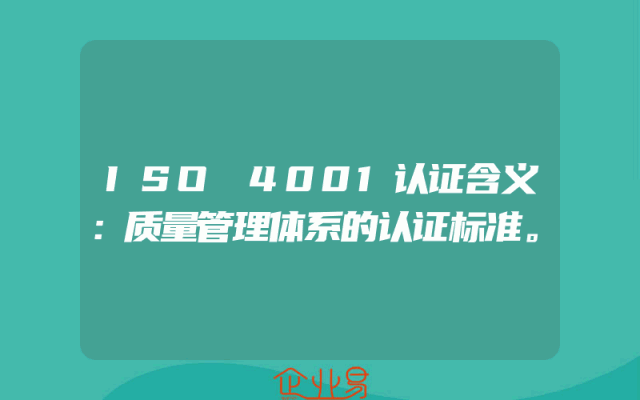 - ISO 4001认证含义:质量管理体系的认证标准。