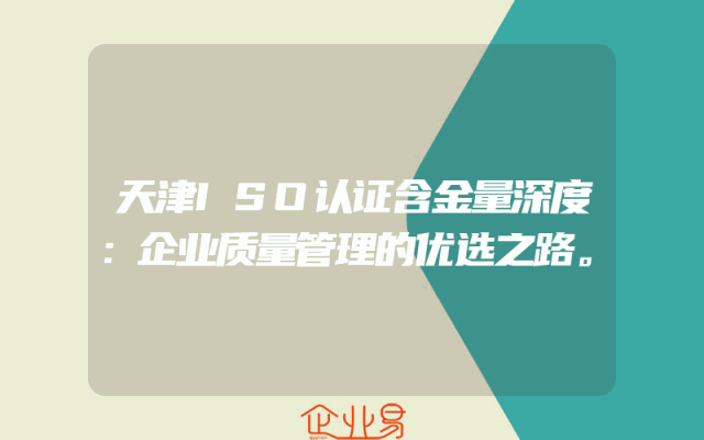 - 天津ISO认证含金量深度:企业质量管理的优选之路。
