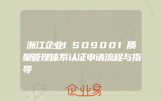 - 浙江企业ISO9001质量管理体系认证申请流程与指导