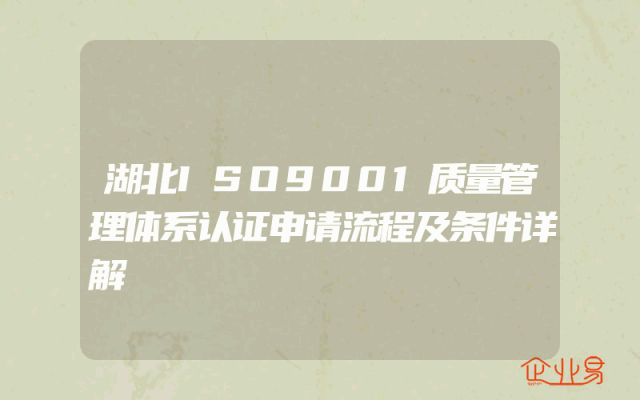 - 湖北ISO9001质量管理体系认证申请流程及条件详解