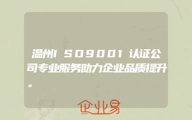 - 温州ISO9001认证公司专业服务助力企业品质提升。