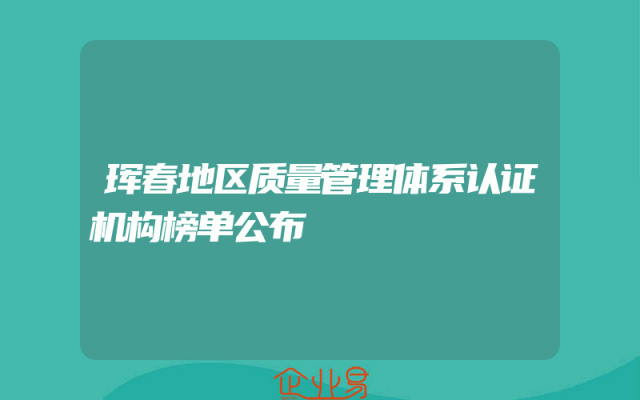 - 珲春地区质量管理体系认证机构榜单公布一、引言随着市场竞争的日益激烈,企业对于质量管理体系的要求也越来越高。在珲春地区,众多企业亟需通过质量管理体系认证来提升自身的管理水平和竞争力。因此,对珲春地区的质量管理体系认证机构进行榜单公布,