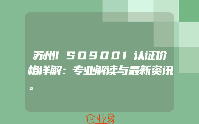 - 苏州ISO9001认证价格详解:专业解读与最新资讯。