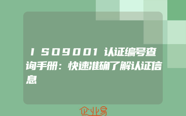 - ISO9001认证编号查询手册:快速准确了解认证信息