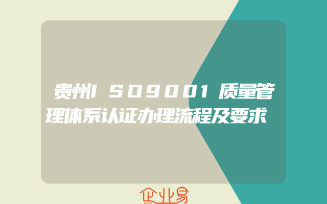 - 贵州ISO9001质量管理体系认证办理流程及要求