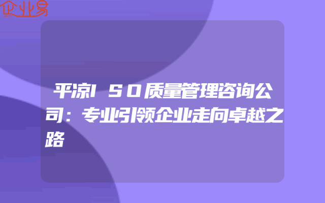 - 平凉ISO质量管理咨询公司:专业引领企业走向卓越之路