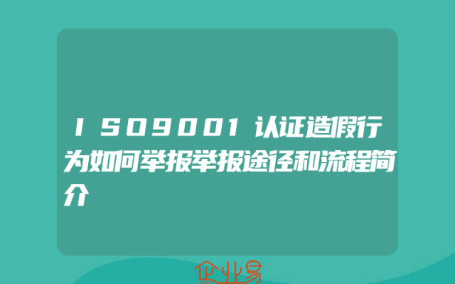 - ISO9001认证造假行为如何举报举报途径和流程简介