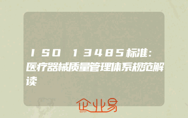 - ISO 13485标准:医疗器械质量管理体系规范解读