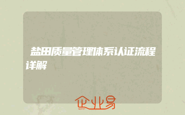 - 盐田质量管理体系认证流程详解一、了解盐田质量管理体系认证盐田质量管理体系认证是针对盐田企业在质量管理方面的一种评估和认证制度。其目的是确保盐田企业按照既定的质量标准和管理体系运作,提高产品质量和生产效率,满足客户需求。该认证流程涉及到企业内