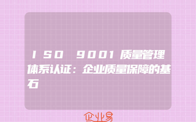 - ISO 9001质量管理体系认证:企业质量保障的基石