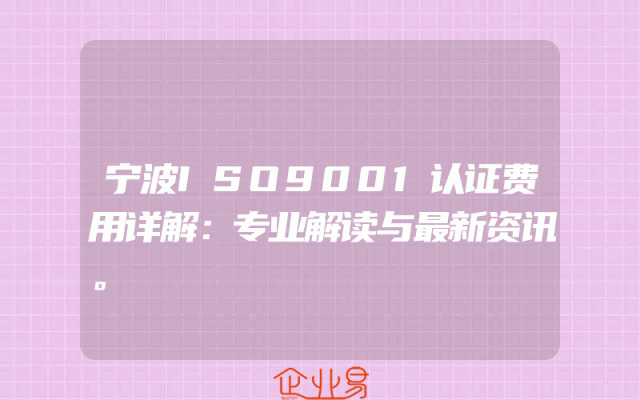 - 宁波ISO9001认证费用详解:专业解读与最新资讯。
