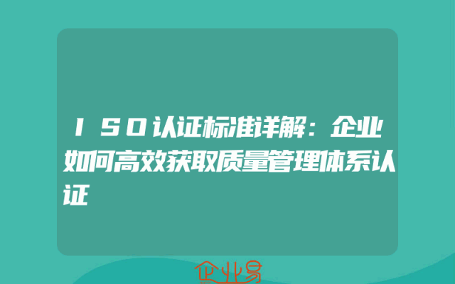 - ISO认证标准详解:企业如何高效获取质量管理体系认证